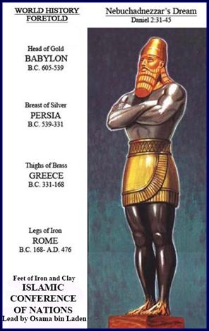 To properly resolve this matter, we must go back in time, in Daniel's day. In Daniel the 2nd chapter, we read the account of Nebuchadnezzar's dream of an immense image where the head was made out of gold, its breasts and arms were of silver, its belly and thighs were of copper, its legs were of iron, its feet were partly of iron and partly of molded clay. (vss. 31, 32) The dream disturbed Nebuchadnezzar very much since he could not understand its meaning. Therefore, he instructed the wise men of his time to interpret the dream to him. And to insure the accuracy of the interpretation C they must also relate to him WHAT HE DREAMED before relating its interpretation! A colossal task indeed!